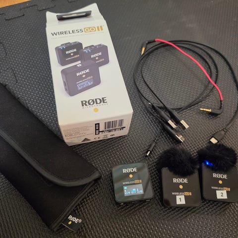Myydään hyväkuntoinen RØDE Wireless GO II -langaton mikrofoni (kahden lähettimen setti: RX + 2x TX) + tarvikkeet.