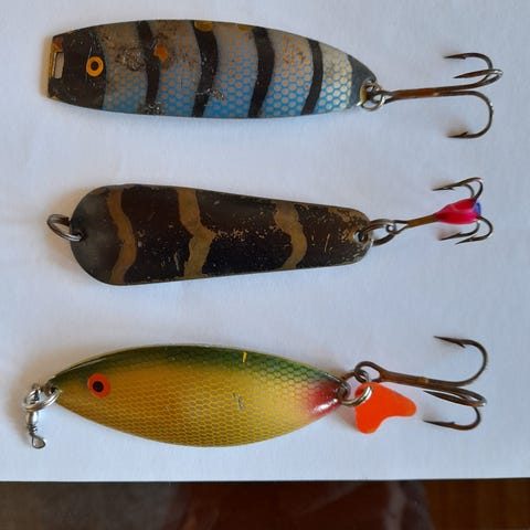 Myydään 6 kpl.peltiuistimia mukana mm.kuusamon helmi uistimia.