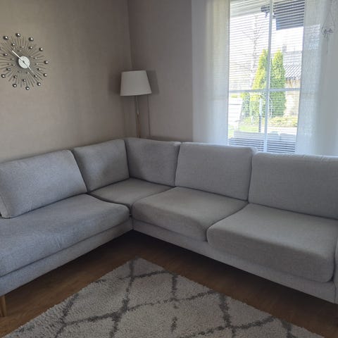 Askon vuonna 2021 ostettu ja hyvässä kunnossa oleva kulmasohva. Sohvan saa kahteen osaan. Taloudessa ei kotieläimiä. Runkomitat: Pitkäsivu 280cm ja lyhytsivu 205cm.