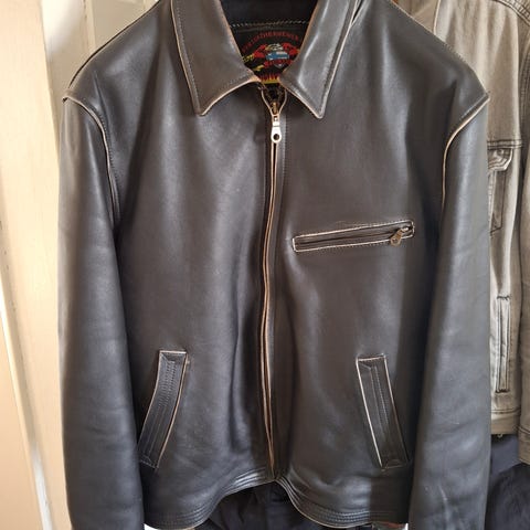 Rottatakki, Original 50"s look! Naudan nahkaa, puuvillavuori, edessä vetoketju, hihansuissa nepparit, helmassa soljet, 2 sivutaskua, 2 isoa povitaskua, toinen vetoketjulla, rintatasku vetoketjulla, koko XL, käyttämätön. Vain nouto.