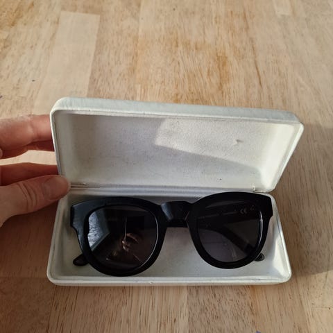 Sun Buddies Bibi aurinkolasit unisex-käyttöön. Mallissa on paksut, mustat kehykset ja tummat linssit. Sangan sisäpuolella on merkinnät "Bibi" ja "Handmade". Aurinkolasit toimitetaan kovassa Sun Buddies -suojakotelossa. Sopii sekä naisille että miehille.