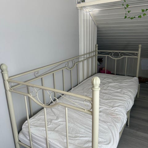80x 200 cm kokoinen mukava sänky patjoineen. Pakettiin sisältyy kuvassa näkyvät patjat eli runkopatja ja petari, jotka hyväkuntoisia sekä alunperin sänkyyn kuulunut hyväkuntoinen taitettava patja, joka sopii hyvin kun sänkyä levitetään parisänkykokoon yövieraita varten. Runko ja sänky ja patjat ovat kaikki erittäin hyvässä kunnossa. Hyvä ja kätevä paketti yhden hengen sänkyä etsivälle!