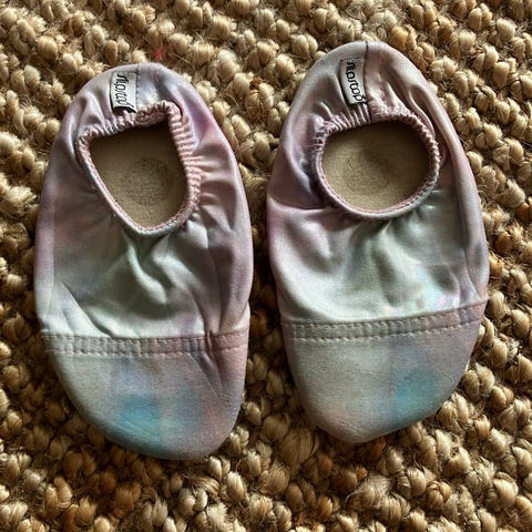 Vauvan lämpimät tossut paapiin kankaasta. Vuorikangas. Nappikiinnitys. Kankaan pohjaväri mintunvihreä.
