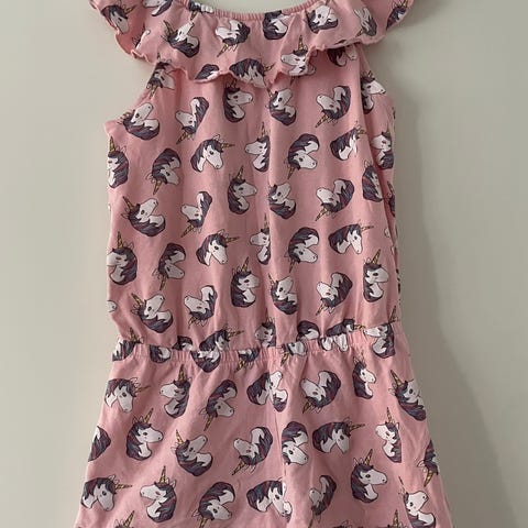 Lindex lasten haalari tytöille, koko 122. Kirjava raidallinen kuosi. Materiaalina puuvilla. Hihaton malli röyhelöolkaimilla ja väljällä leikkauksella. Sopii arkeen ja vapaa-aikaan.