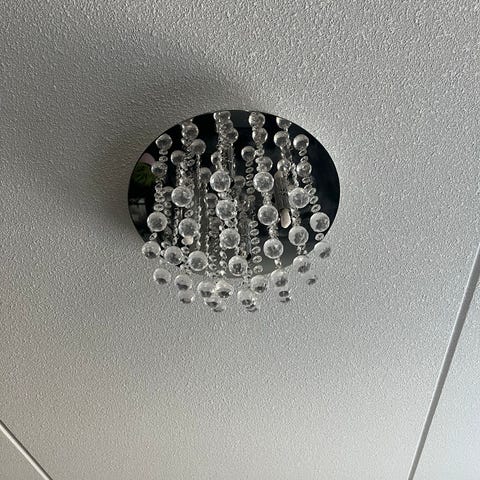 Kuvan mukainen kristallikruunu. Halkaisija noin 50 cm. Myynnissä myös toinen samanlainen, joka hieman pienempi.