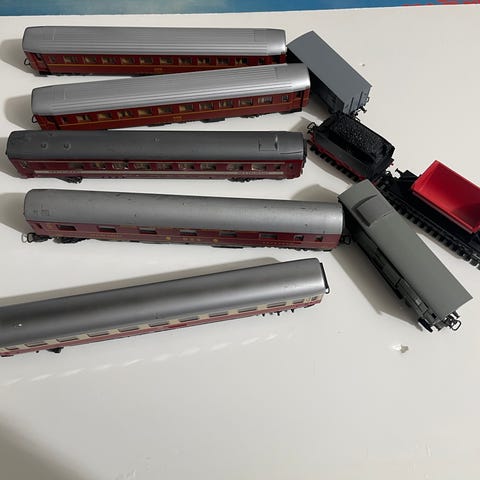 Kuvissa olevat märklinit, veturit 4kpl ja vaunut 4kpl.