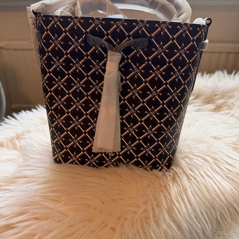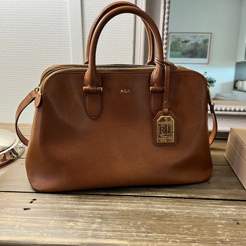 Uudenveroinen Ralph Laurenin musta nahkalaukku, kantohihnat ja säädettävä olkahihna. Vetoketjutaskut molemmilla ulkosivuilla. Sisäpuolella vuoressa vetoketjutasku sekä taskut esim. puhelimelle. Keskiosassa magneettikiinnitys. Korkeus 26cm, leveys 39cm ja syvyys 17cm. Dustbag mukaan.