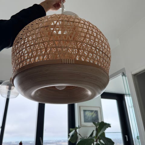 Myydään hyvässä kunnossa oleva Ikean Misterhult-kattovalaisin. Halkaisija 45cm. Lamppu ei sisälly hintaan.