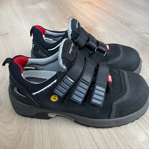 Jalas turvakengät, koko 37. Vähän kulumaa ja vasemman jalan kantapäässä pieni kuluma sisäpuolella, ks kuva. Muuten ajavat vielä asiansa hyvin. Mmm.