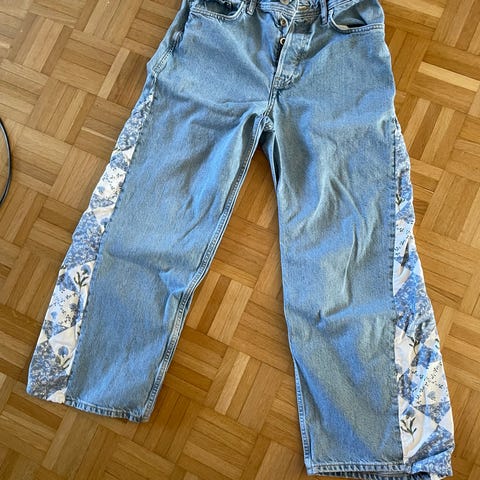 Missguided housut naisille. Koko W30, arvioitu naisten koko XL. Materiaalina puuvilla. Housuissa on sininen väri ja kauttaaltaan kuviollinen pinta. Sopivat arkikäyttöön ja vapaa-aikaan. Tarkemmat mitat ja istuvuus kannattaa varmistaa omien mittojen mukaan.
