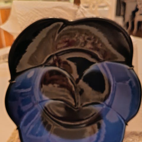 Kaunis violetti Orvokkimeri-sarjan pieni lautanen 15 cm x 14 cm.