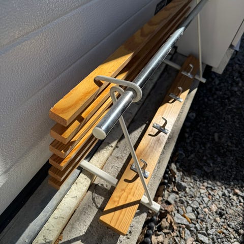 Funkkistyylinen naulakko ylimääräisenä. Levys 1 m, syvyys 32 cm.