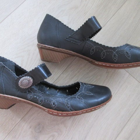 Rieker sandaalit, koko 39. Materiaalina nahka, jossa reikäkuvio. Väri harmaa, remmissä tarrakiinnitys jalan päällä. Ulkopohja kumia, jossa Rieker-logo. Sopivat arki- ja vapaa-ajan käyttöön lämpimälle säälle.
