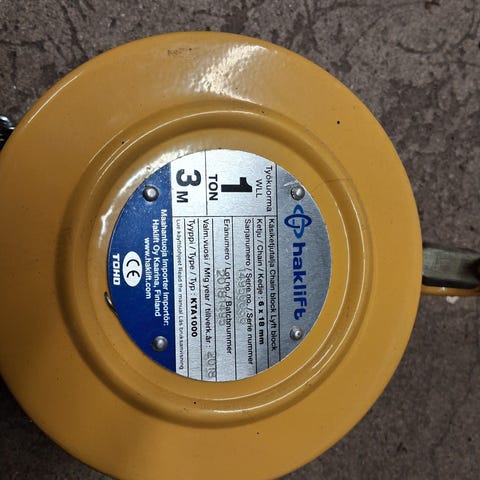 Vetoetäisyys 2,2-6 m. Hihnan pituus 6 m. Kuormitus enintään 600 kg
