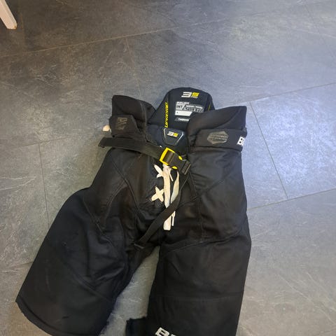 Myyntiin Bauerin Nexus -mallin pro stock housut. Kyseessä siis pro -tason housut joita valmistetaan vain ammattilaisille. Housut valmistettu Luleån joukkueelle (SHL) myös monet NHL pelaajat suosivat saman mallin housuja. Parempi suojaus kuin kaupan parhaissa malleissa, silti hyvä liikkuvuus sekä istuvuus. Housuissa myös velcrotarrapaikat mainoksille.