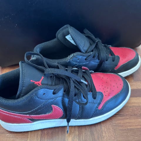 Nike Air Jordanit, koko 39. Unisex-malli, väriltään musta, punainen ja valkoinen. Korkeavartinen malli, nauhakiinnitys