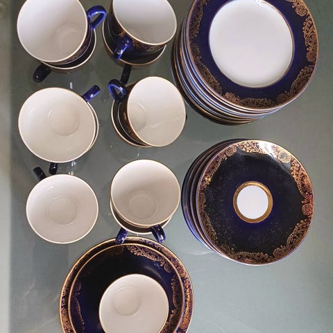 Huom! Vain kahvipannussa ja sokerikossa on Lomonosov leima, mutta samalla kertaa on kaikki ostettu Pietarista.
