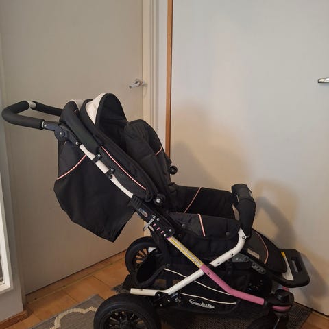 Tullsa sadesuoja rattaisiin, kokonaan heijastinkangasta. Ollut käytössä Emmaljunga scootereissa.