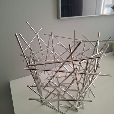 Todella näyttävä Alessi blow up -hedelmäkori. Hyvin vähän käytetty. Noin 32 cm halkaisijaltaan ja 27 cm korkea.