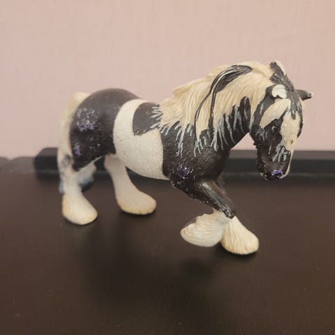 Schleich musta/valkoinen pinto hevonen, tamma. Vuosiluku 2010. Hinta 7€