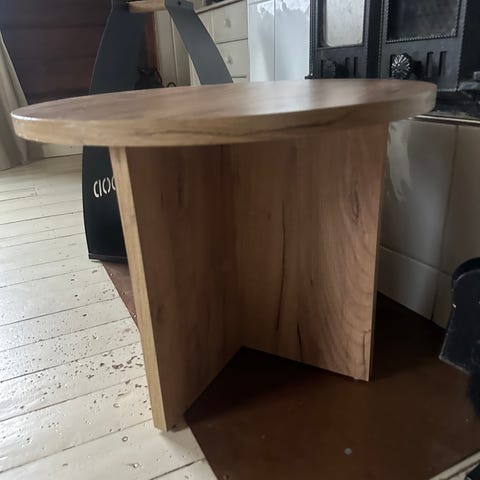 Jyskistä 14.3.26 ostettu sohvapöytä. Ei mitään vikaa, mutta ei sittenkään ollut sopiva meille. On siis todella tuore ja edelleen kuin uusi. Halkaisija 70 cm.