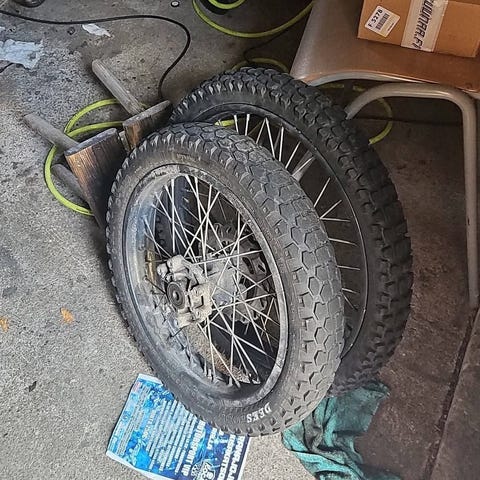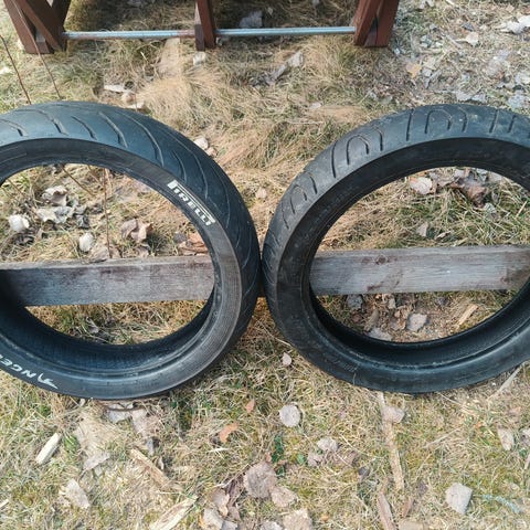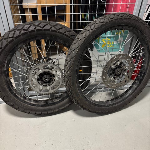 Etuvanne kokoa 80/90-21, takavanne kokoa 110/80-18. Vanteet ehjät ja renkaat hyväkuntoiset.