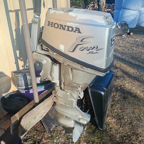 Myynnissä Honda 5 hp nelitahti perämoottori irtotankilla.
