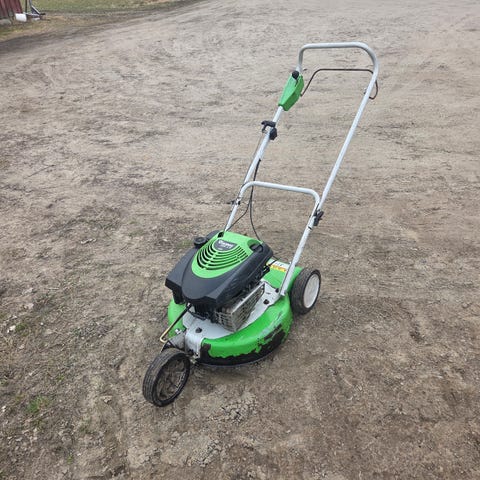 Hyväkuntoinen toimiva puutarhajyrsin. Talven jälkeen lähti parilla nykäisyllä käyntiin ja toimi niinkuin kuuluukin. Pakoputki ruosteessa (mukaan saa ehjän) ja vetonaru ei ensimmäisellä nykäisyllä meinannut mennä sisään mutta alkoi toimimaan kun pari kertaa nyki. Nouto Jämsästä