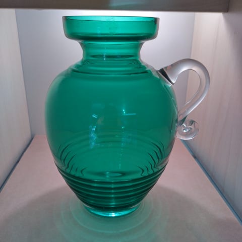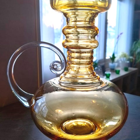 Myydään Riihimäen lasi Kleopatra maljakko. Kantokahvan alaosassa särö.