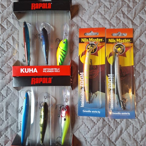 Mm. Rapalaa 11kpl, Abu tormentor 3kpl, Nils Masters 2kpl ja Turunen 2kpl (toisesta karva otettu pois).