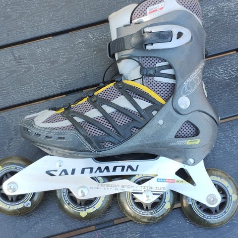 Käytön jälkiä ja kulumaa löytyy, mutta ehjät ja hyvä kuntoiset. Merkki Crazy Creek. Koko 38.