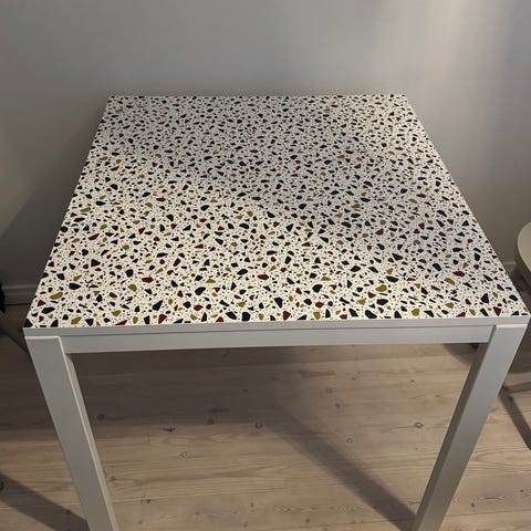 Kohtuullisessa kunnossa Ikean Docksta ruokapöytä. Pöydän jalka irroitettava, eli helppo kuljettaa. Huom. Pöydän päältä maalipinta kulunut ja muitakin jälkiä löytyy, sitä voi paikkailla halutessaan. Ei haittaa käyttöä!