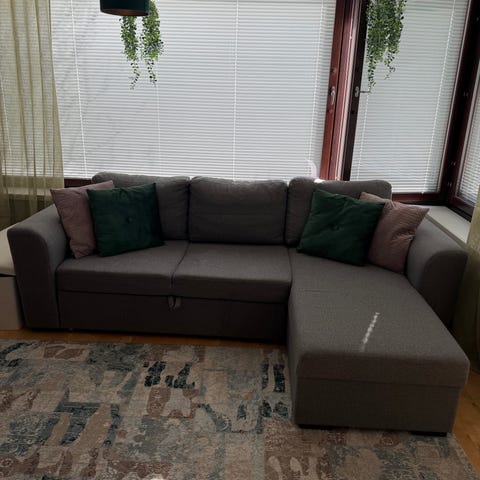 Jyskistä ostettu 5kuukautta sitten, oli käytössä vähän aikaa, sohvassa on pieni suklaan läiskä mutta sitä ei edes näe melkein ollenkaan sohva on tilava ja painaa aika paljon haku mieluusti, sohva muuntuu helposti sängyksi istuinpehmuste pussijousilla ja vaahtomuovilla selkäpehmuste vaahtomuovia säilytystilalla. Jalat massiivipuuta. Makuuala 143x200 cm. L220 x K83 x S83/151 cm ( kuitti lappu tulee mukaan) voi myös neuvotella hinnasta. Osta nopsaa pois.