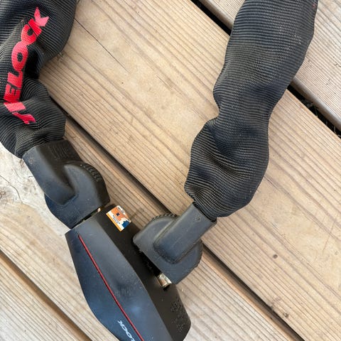 ketjulukko polkupyörälle tai muulle ajoneuvolle. Lukossa on kangaspäällysteinen ketju ja se toimitetaan avaimen kanssa. Väri on musta ja lukko soveltuu yleiseen lukituskäyttöön esimerkiksi pyörän, skootterin tai muun vastaavan kohteen turvaamiseen.