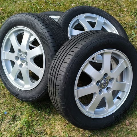 Tästä olis myyntiin hyvässä kunnossa olevat talvirenkaat volvon alkuperäisillä alumiinivanteilla!