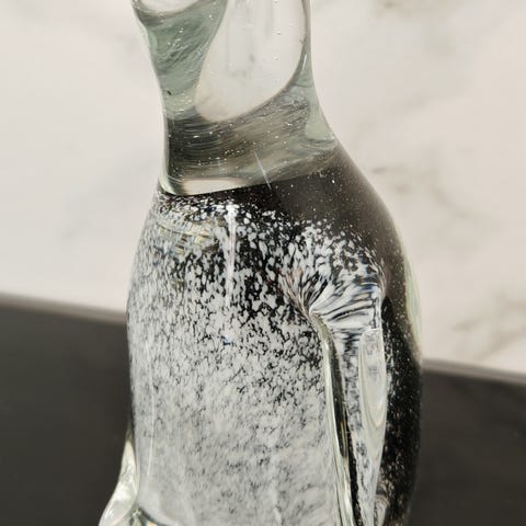 Koboltinsininen lasinen lintukoriste. Tarraa tai signeerausta ei ole, mutta saattaa olla A. Uutelan tuotantoa.