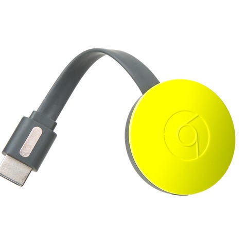 Google Chromecast mediasuoritin. Väri musta. Laite liitetään televisioon HDMI-liitännän kautta ja sitä käytetään suoratoistoon yhteensopivilta laitteilta. Mukana virtalähde ja kaapeli kuvan mukaisesti.