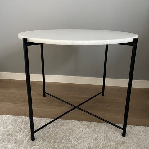 I am selling this two sided sofa table which has fake wood and fake marble. It is in good condition except that the screws are lost. I was using it like that for a few months and it serves the purpose without screws, but i recommend putting the screws so it will be more stable.