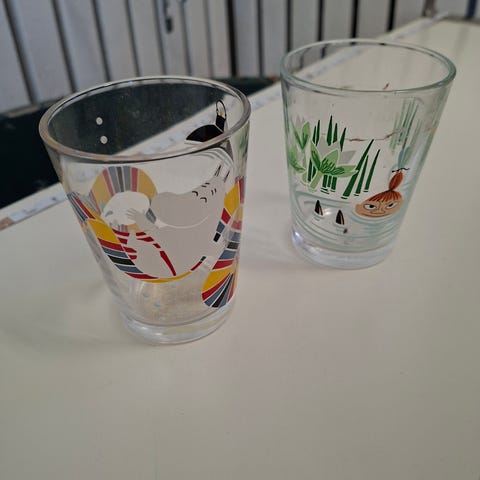IKEA juomalasit ja kahvimukit, kirkas lasi ja valkoinen keramiikka