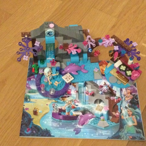 LEGO Elves setti. Settiin kuuluu pieni rakennus, vesiputous, puita sekä minifiguuri ja delfiinifiguuri. Setin yksi puunoksa on katkennut, mutta kaikki muut osat löytyy ja ovat kunnossa.