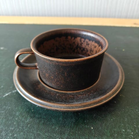Arabia Ruska mukit 2kpl aluslautasilla.