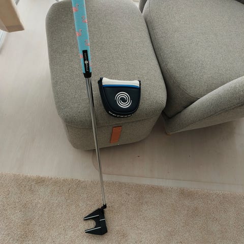 Putterissa on blade-tyyppinen lapa, jossa on valkoinen insert-lyöntipinta.