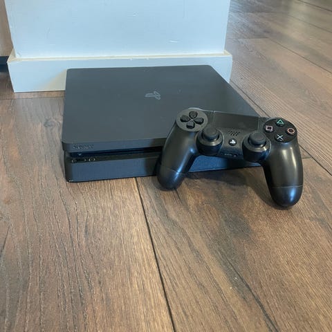 Sony PlayStation 4 pelikonsoli. Mukana kaksi DualShock 4 -ohjainta (valkoinen ja musta), virtajohto, liitäntäkaapeli, USB-liitäntäjohto sekä USB-latauskaapeli ohjaimille. Mukana myös kuvassa näkyvät pelit Minecraft ja Sonic Racing. Vähän käytetty ja täysin toimiva.