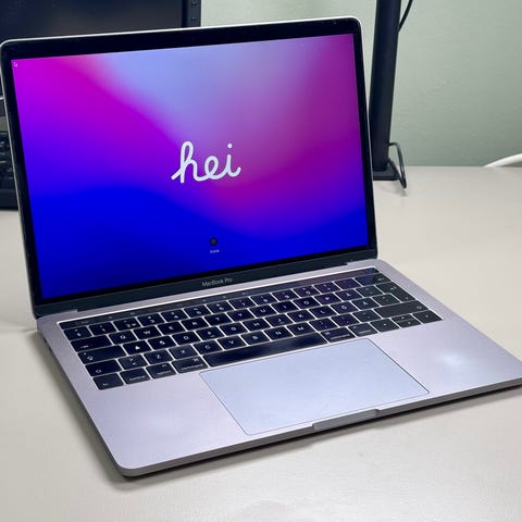 Apple MacBook Pro kannettava tietokone 13" näytöllä. Hopeanvärinen alumiinirunko, taustavalaistu näppäimistö ja suuri monikosketus-ohjauslevy. Laitteessa on macOS-käyttöjärjestelmä ja se soveltuu yleiseen tietokoneen käyttöön, kuten selaamiseen, toimisto-ohjelmiin ja kevyeen multimedian käsittelyyn.