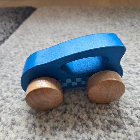 Myydään kuvassa oleva n. 20 cm pitkä punainen puinen auto ja siihen sopiva peräkärry.