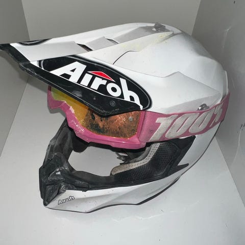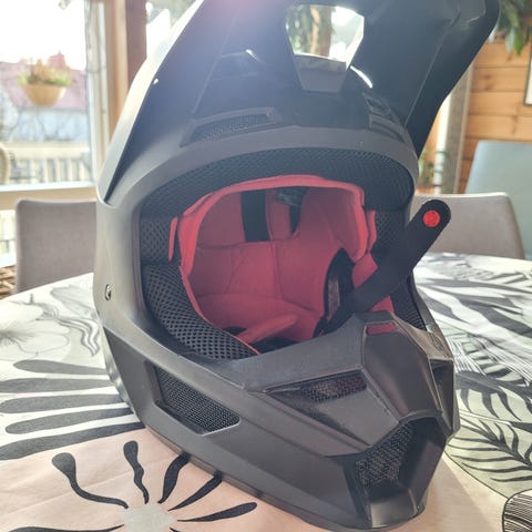 Yoko motocross-kypärä musta. Kypärässä on pitkä lippa ja täysi leukasuoja, jotka soveltuvat maasto- ja motocross-ajoon. Kypärässä on useita ilmanotto- ja poistoaukkoja ilmanvaihdon parantamiseksi. Mukana on erilliset 100% -ajolasit, jotka on kiinnitetty kypärän ympärille kulkevalla hihnalla. Väri on mattamusta, ja kypärän ulkopinnassa on Yoko-logot kyljissä ja takana. Kypärä sopii moottoripyörä- tai mönkijäkäyttöön maasto-olosuhteissa käyttäjän koon ja hyväksyntämerkintöjen mukaan. Ovh: 120€ M koko! Nouto tai toimitus vain Kuopion alueella.