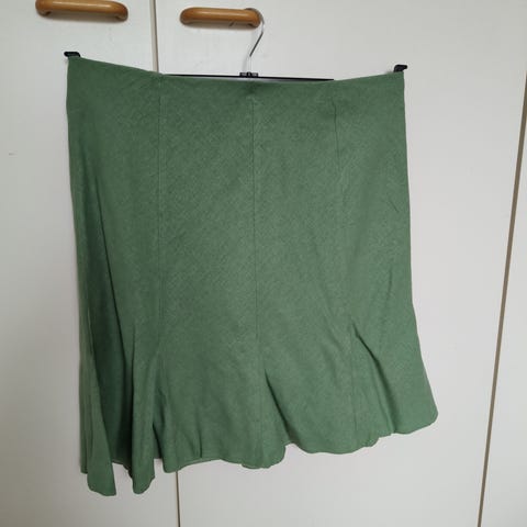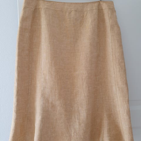 100 % pellavaa. Suoranmallisen hameen väri on tummanharmaan ja mustan väliltä.