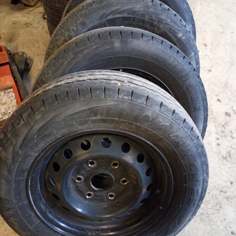 Myydään kuvan setti. 2 renkaassa 6mm pintaa ja kahdessa 3-4mm joista toisesta renkaasta runko rikki, mukaan 4mm rengas eli tästä vielä ajoon kesäksi hyvä setti.