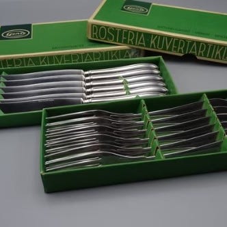 Luupääaterinsetti, 6 haaruukkaa ja 6 veistä. Ainoastaan nouto