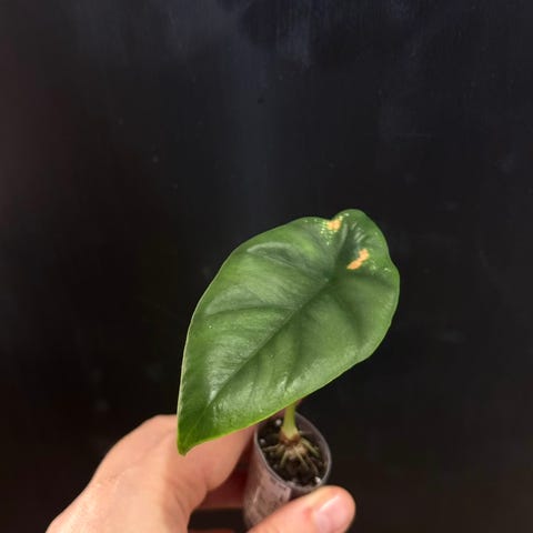 Juurakkovehka Alocasia Boyceana "Shattered Glass" kasvi, kasvatettu mukulasta. Erittäin hyvä väritys kuten emokasvilla. Istutettu aroid mixissä (kookos kuittu, perliitti, ruukkusora, orkidea kaarna ja tree fern fiber) ja 6cm ruukkussa, korkeus 21cm.